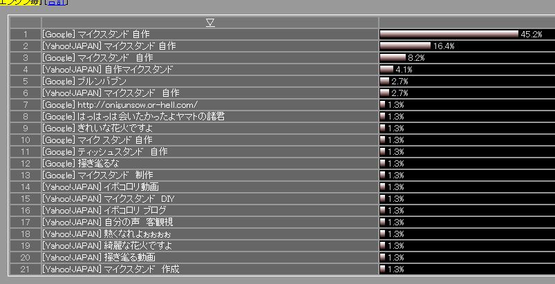 犬猫フェレットに踏まれるの至福ですもっと踏んでぇ。さすがに牛とか馬とかに踏まれたら死ぬ自信あるけども。 動物は好きです。爬虫類とかも好きです。触れないけど。 だが虫、テメーらは駄目だ。 なんか他に書こうと思ってたことがあるけども上のくだりで忘れました。光の速さの忘却力。 あ、最近とても見てみたい動物がいます。ハシビロコウっていう半端ねぇ鳥さん。 羽広げた姿が変な感じに神々しいというかなんというか。人の魂とか食いそうな感じ。 鳥は猛禽類のカッコよさにとても惹かれるけども、ハシビロコウさんは猛禽とは違うカッコよさがあります。画像を見る限り。すごい愉快な顔にも見えたりチョコボみたいに見えたりヒットマンみたいに見えたり。 お金出来たら上野動物園行ってこようかしら。パンダで混んでそうだなぁ。 パンダっていうとドヤ顔で元は肉食だから生肉バリバリ食べるんだよーとか言う人いるけども、そんなことよりあんなに愛嬌振り撒きながら易々と竹へし折ってなんの苦労も無くボリボリ食ってる姿に戦慄を覚えるべき。 幻滅させたいのかなんなのか知らんけどライオンとか虎とかでも生肉の塊貪ってるところかわいいんだからパンダが生肉貪っててもかわいいだろよ。 むつかしい話はできないのでしません。 ああ…本当に何を書こうとしたのか思い出せない…。タイトルはなんなの…。 2011.03.03 Thu 03:19:49 うーんんん…こちら…ここ1ヵ月、このブログにどういったフレーズで検索して辿り着いたかのグラフなんですけども…半数の方がマイクスタンドの作り方を検索していらしてるんですよね… こちらが例の記事なんですよね。 なんかもう色々と申し訳無いこと山の如しなんですよね…。 自分でググってみたら1ページ目に出てきて鼻水吹いた。 堂々とタイトルに自作すたよー^^とか書いてるからでしょうかね。本当に申し訳ない。 まぁでもこんなんでもそれなりに使いやすい(のかどうかは知らんけど愛用している)ので追記に作り方書いておきます。 2011.02.19 Sat 00:28:51 画材を発掘した |